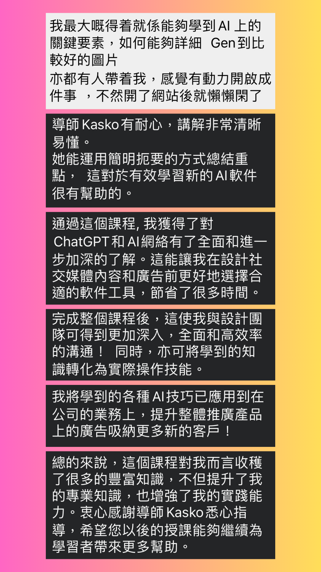 已經有700+個朋友上過我嘅AI ChatGPT課程,你都一齊提升工作效率,開拓創意新境界!